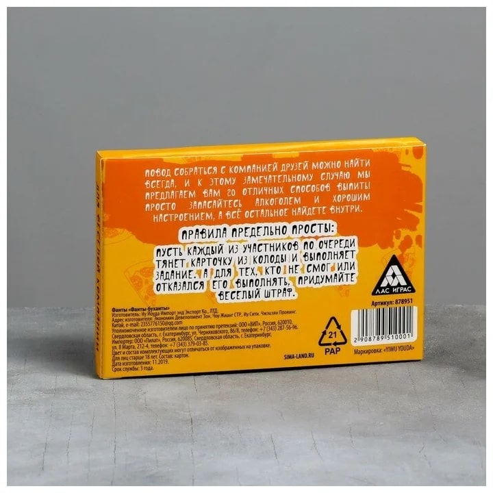 Купить игра для компании "фанты буханты" 20 карт от 100 руб. с доставкой до пункта выдачи в Вуктыле. Интернет магазин ДекаМаркет. Оплата при получении.